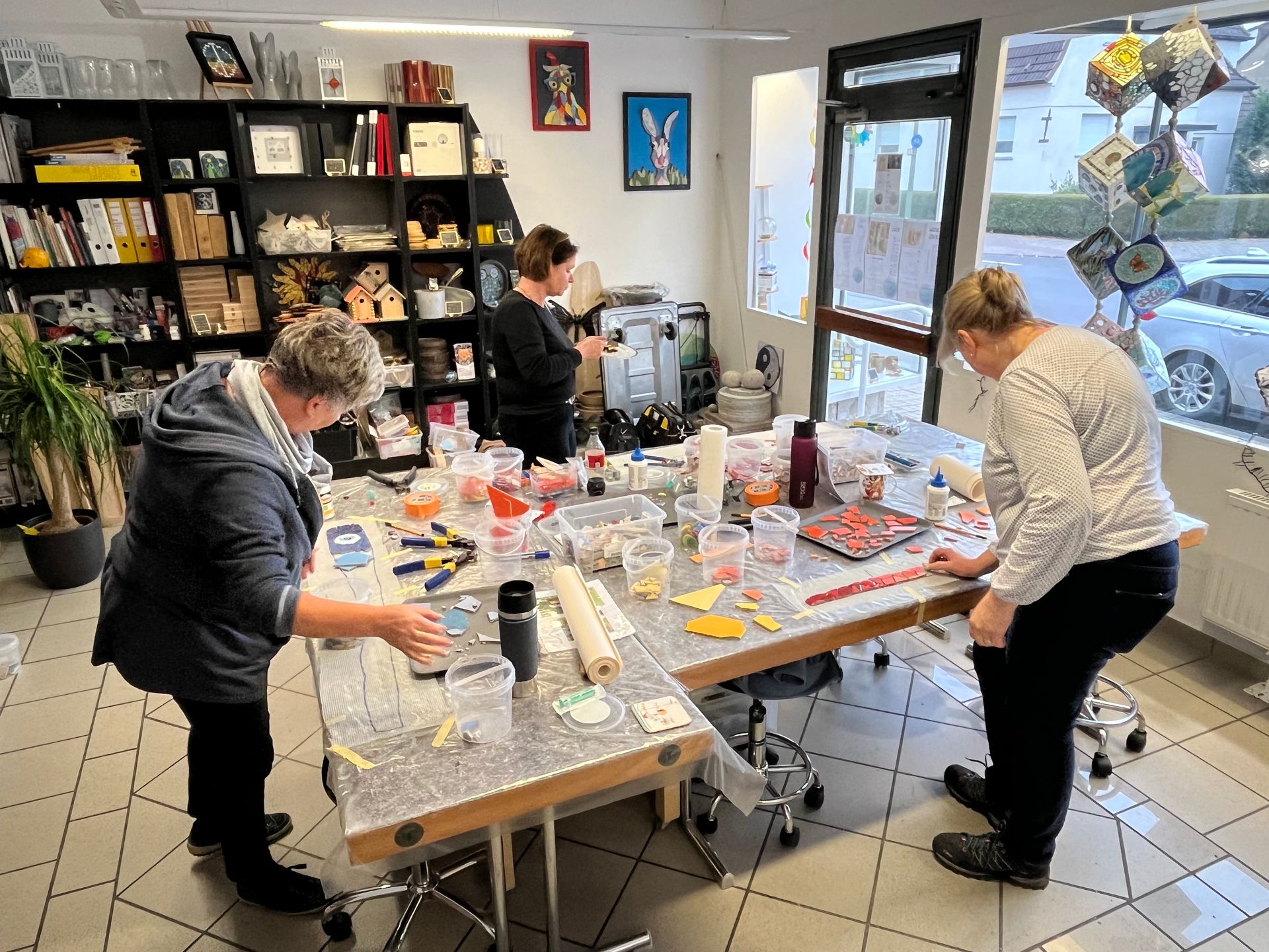Besucht mich gern in meiner Werkstatt, dort führe ich Kurse und Workshops durch. Aber auch für Schul- und Kindergartenprojekte stehe ich gern zur Verfügung.