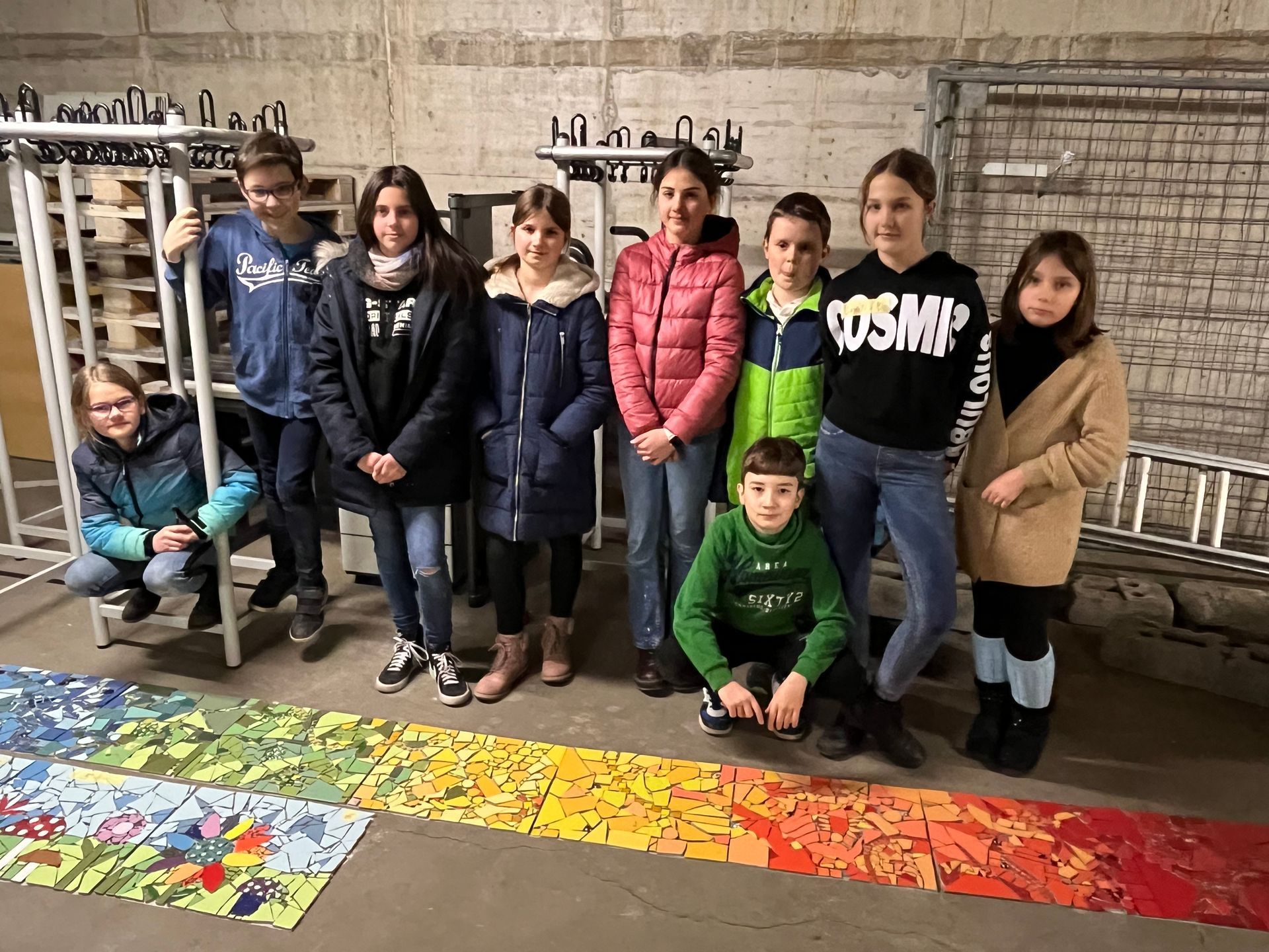 Bei den Einzelmotiven entschieden sich die Schüler:innen dazu, Motive aus Flora und Fauna zu wählen, um darauf hinzuweisen, dass wir unsere Natur schützen müssen. Für das Gruppenmosaik wurde ein Farbverlauf erarbeitet.