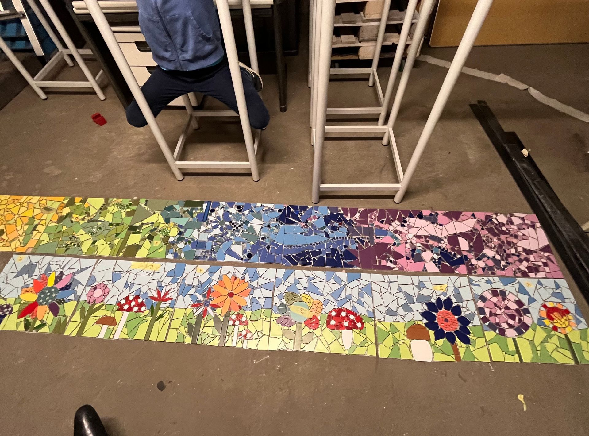 Nach Genehmigung des Projektes begann das Projekt im September 2023. Der Fokus des Projektes lag in der Mitbestimmung der Schüler:innen (Art, Form, Ausgestaltung des Mosaiks, Arbeit in Gruppen oder Einzelmotive).