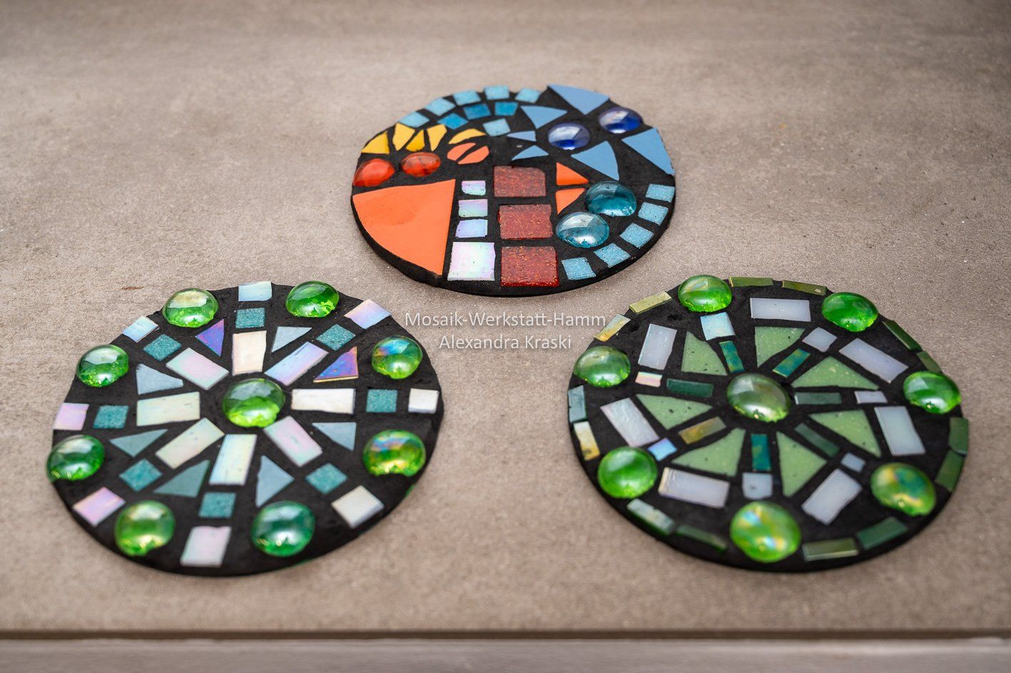 Wunderbare Mosaikarbeiten entstanden im Dezember 2021 bei einem Workshop für die Kinder und Jugendlichen der Jugendarbeit Hamm Westen.